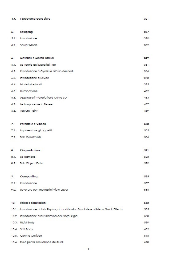 Sono esclusi dagli argomenti trattati: vertex painting, motion tracking e video editing, motion capture, Workbench e Grease Pencil, trattati invece in "Blender 2.8+ - La Guida Definitiva" in 4 volumi.